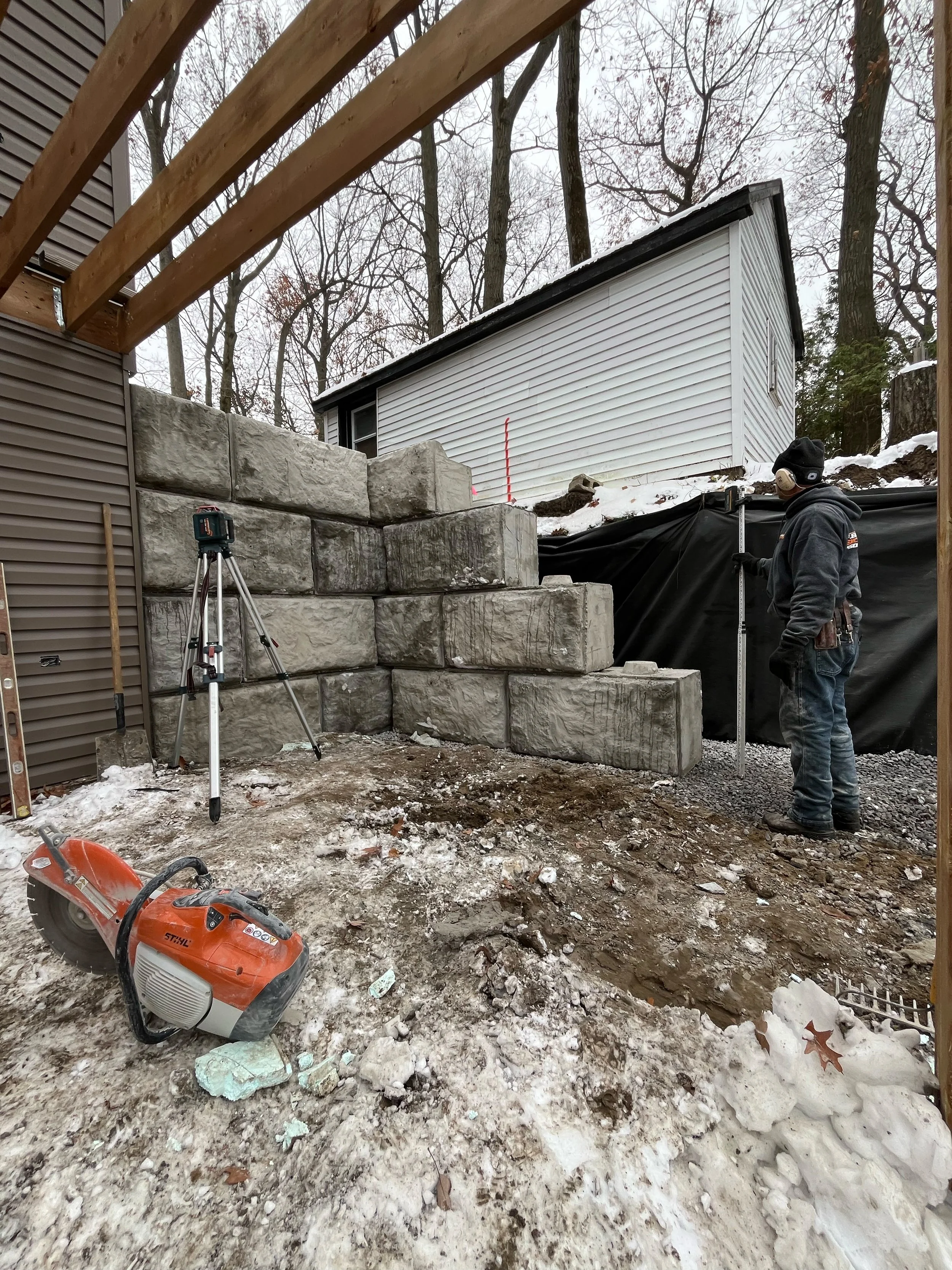 Installation de murs de soutènement pour stabiliser les sols, retenir les pentes et structurer durablement le terrain.