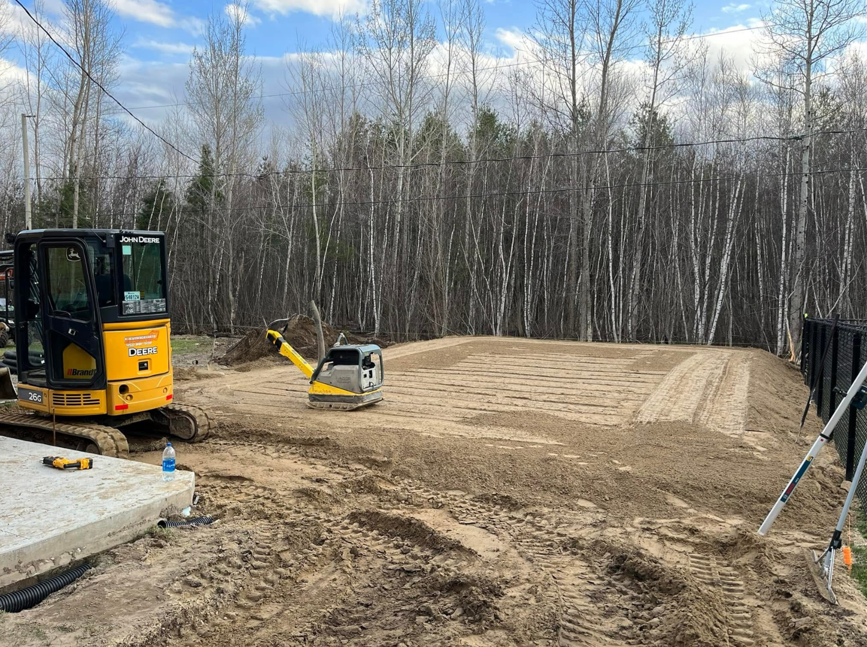 Excavation et préparation du terrain pour l’installation de piscines, incluant la mise à niveau et les ajustements nécessaires à une installation stable et durable.